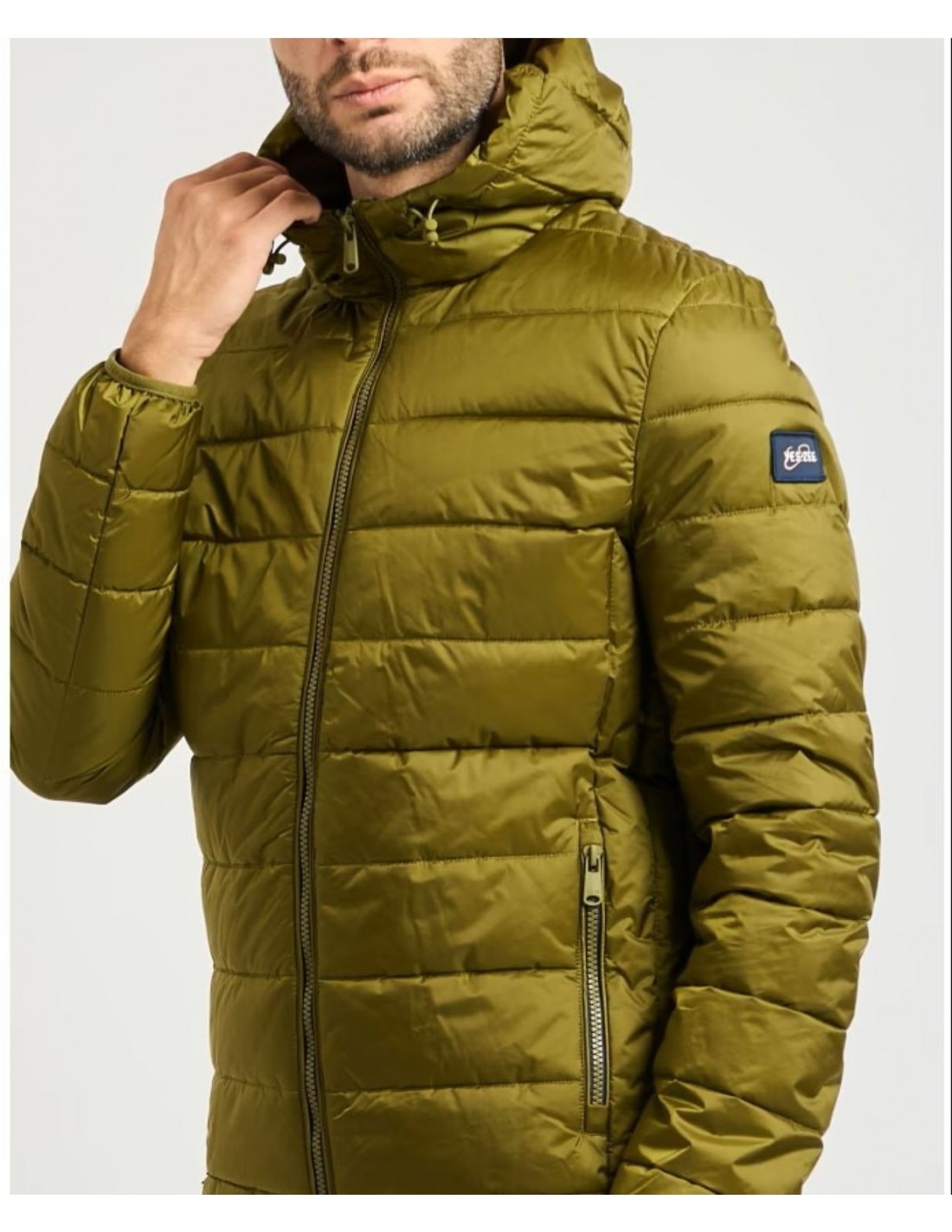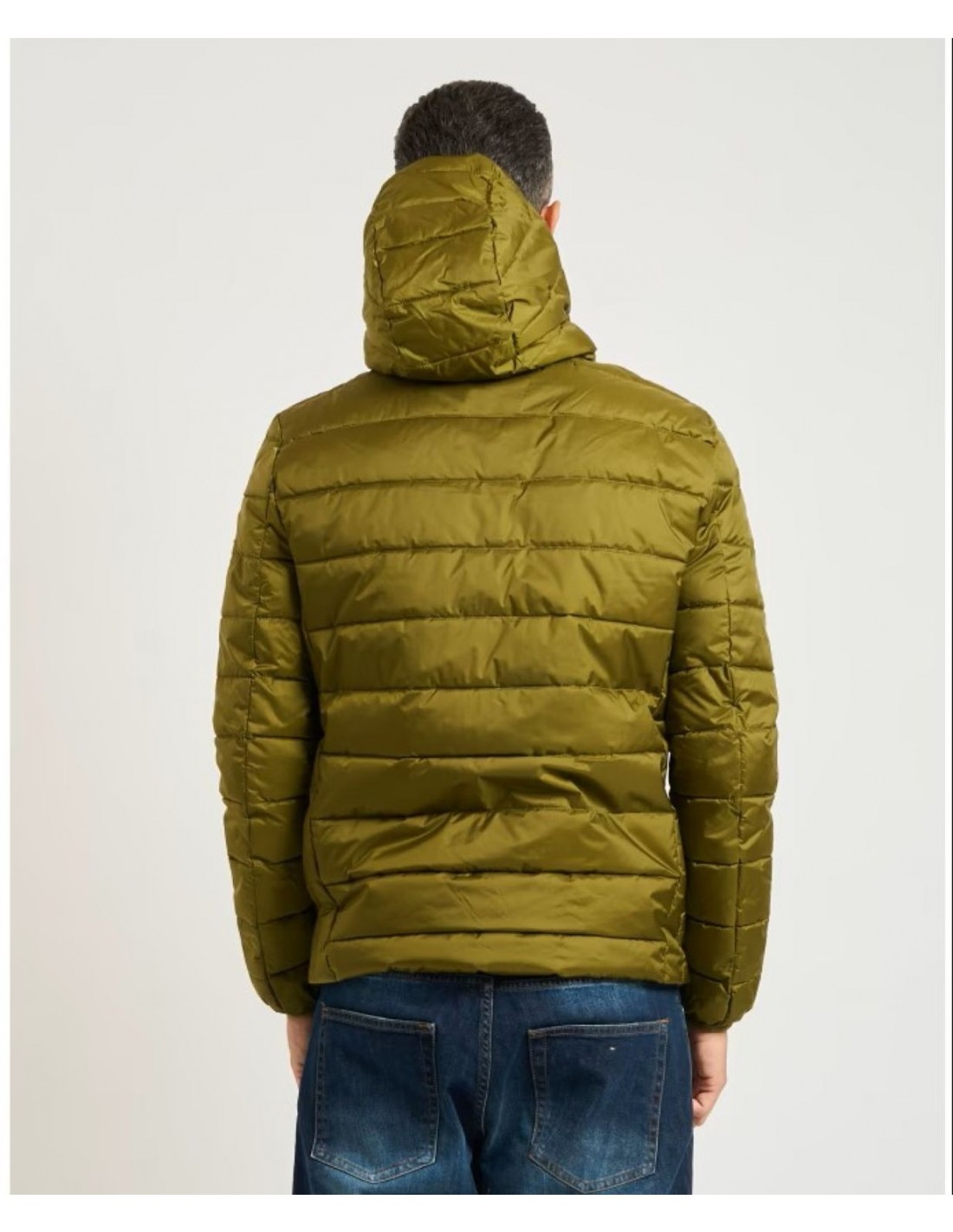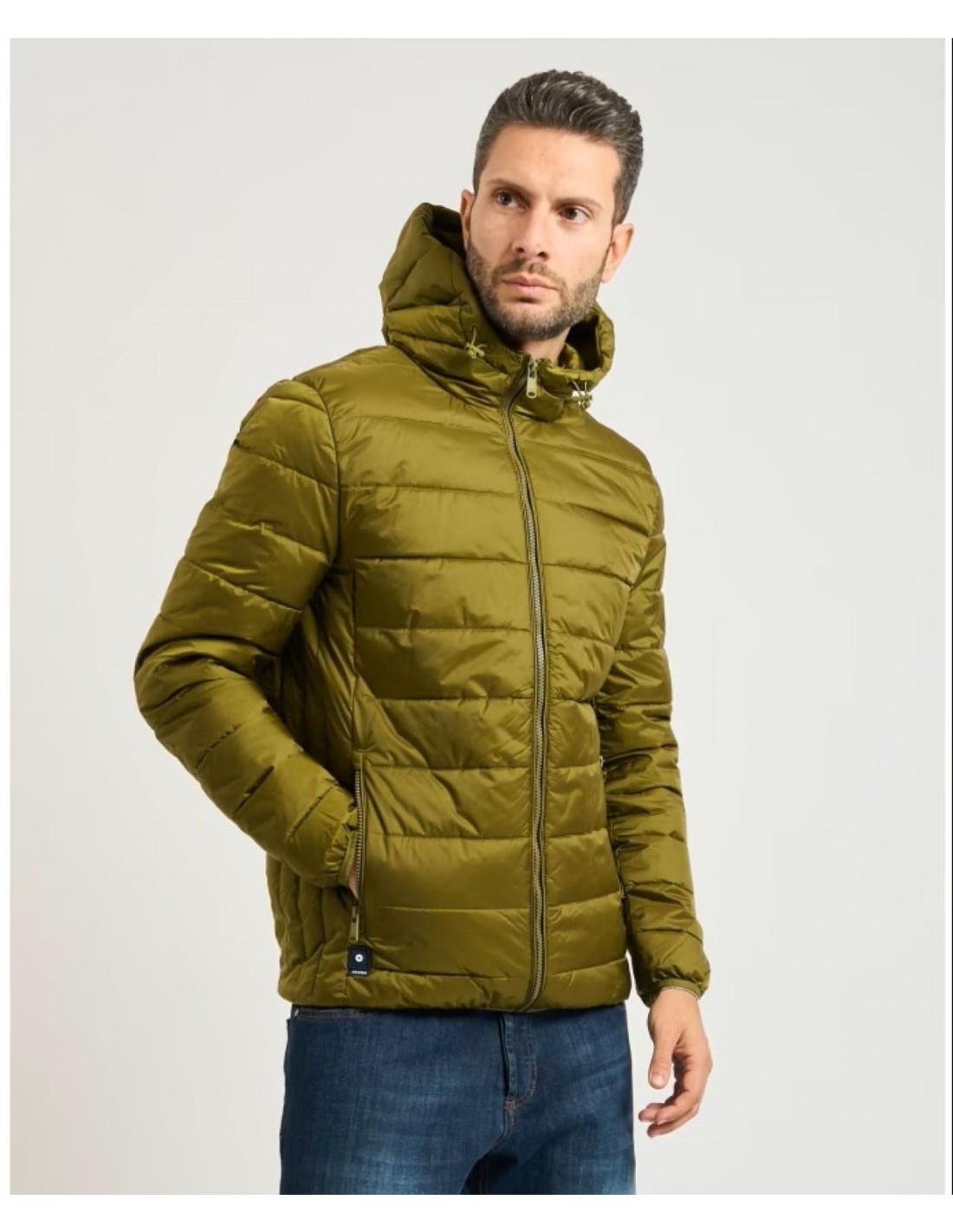 Cazadora ligera acolchada, corta, con cierre de cremallera central. Con bolsillos y capucha. Confortable y repelente al viento. Composición exterior: 100% nylon-poliamida reciclada.
