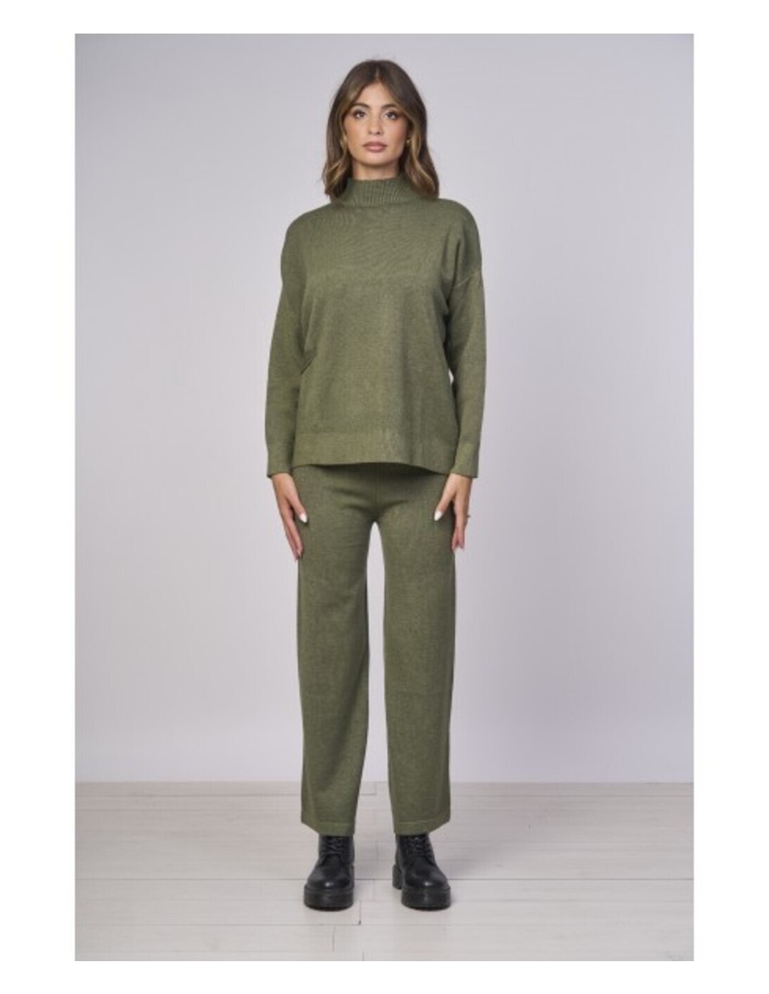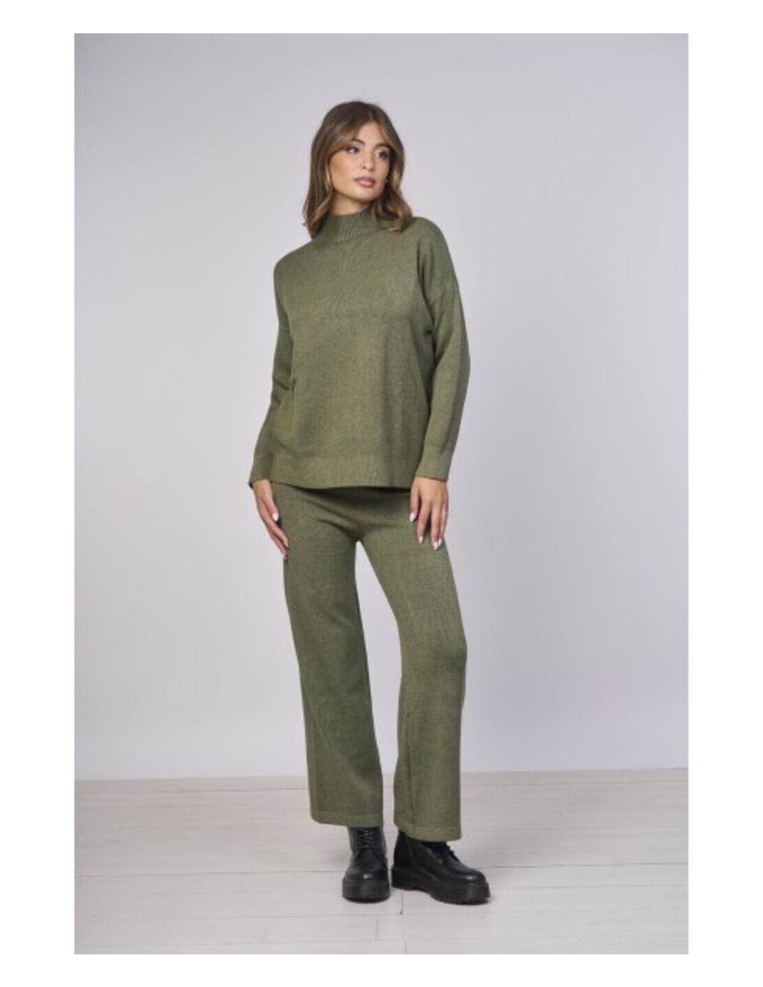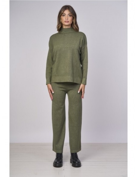 Pantalones de punto de pierna ancha, que combinan comodidad y estilo. Confeccionados en un punto suave ofrecen un ajuste relajado y una comodidad excepcional. La cintura elástica garantiza un ajuste perfecto. Ideales combinados con el top a juego para un look monocromático moderno. Composición: 50% viscosa,27% poliéster y 23% nylon.